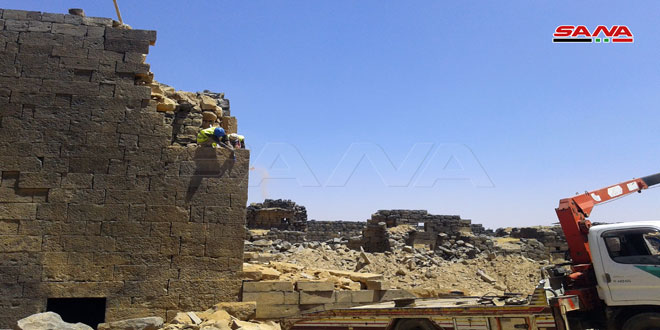 وحسب رئيس دائرة آثار درعا الدكتور محمد خير النصرالله فإن الأعمال التي بلغت نسبة الإنجاز فيها 93 بالمئة شملت تركيب ربذان حجرية وترحيل أنقاض وفرز حجارة وإعادة تركيب حجارة منهارة وجدران متصدعة وإجراء صيانة للدرج والسقف وغيرها.