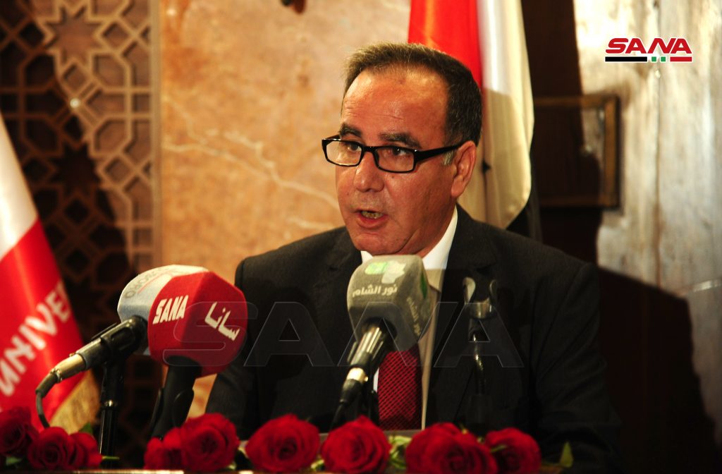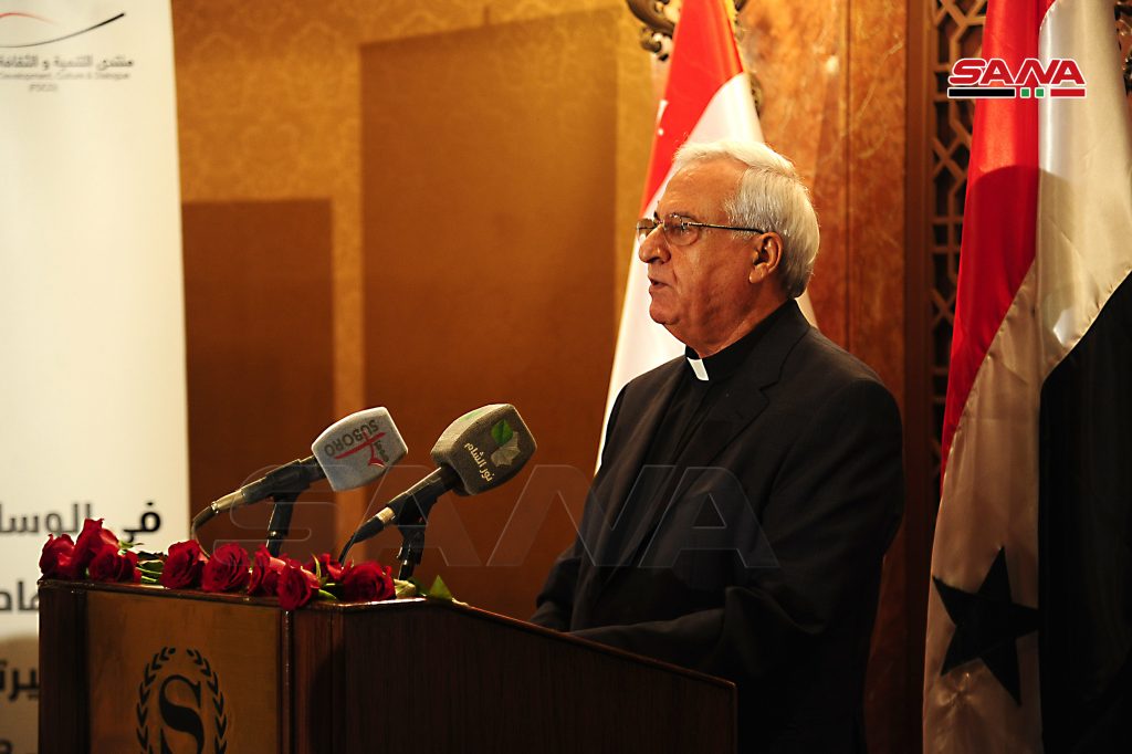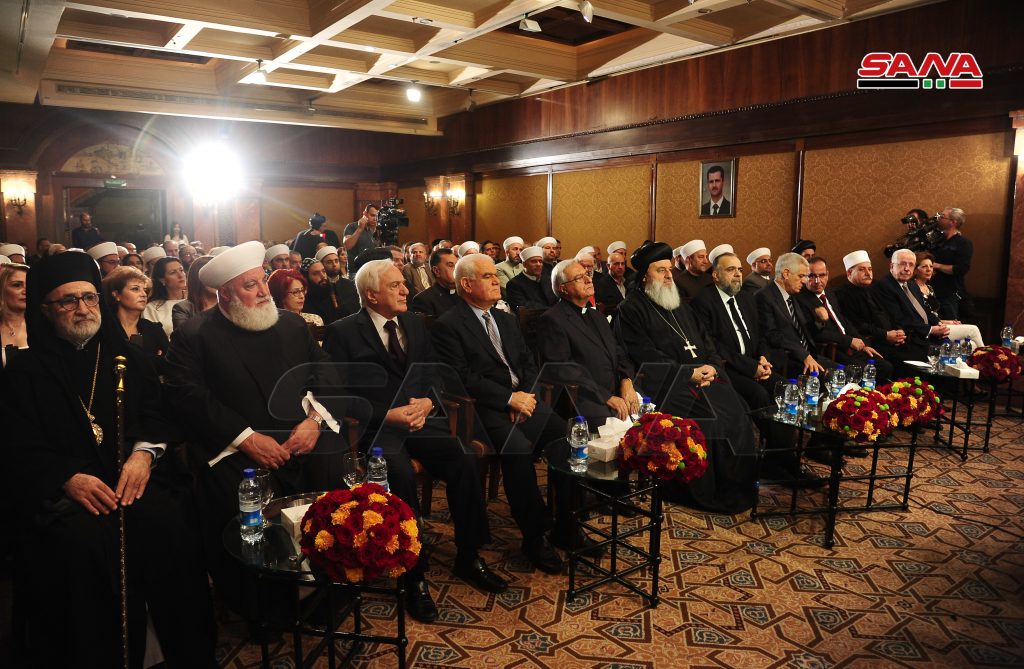 وزير الأوقاف الدكتور محمد عبد الستار السيد أكد في كلمة له أن سورية مهد الحضارات حيث يعيش المسلمون والمسيحيون شركاء وهما ركنان أساسيان مبيناً أن التطرف الذي بث في بلادنا صنع في السعودية وقطر وتركيا.