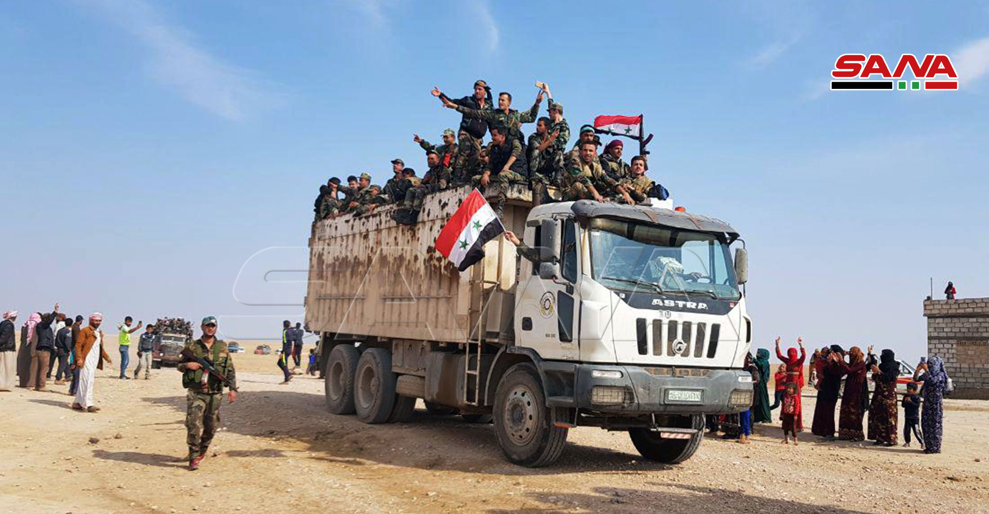 ودخلت وحدات من الجيش العربي السوري منذ الثالث عشر من الشهر الجاري بلدة تل تمر وصوامع الأغيبش فيها وعدة قرى بريف الحسكة ومدينتي منبج وعين العرب بريف حلب الشمالي الشرقي وبلدة عين عيسى ومدينة الطبقة ومطارها العسكري بريف الرقة في إطار ممارسة واجبها بحماية الوطن والدفاع عنه حيث شهدت جميع المناطق التي انتشر فيها الجيش تجمعات شعبية ومسيرات حاشدة ترحيبا به لحمايتها من أطماع أردوغان وجرائم مرتزقته.