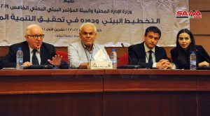 المشاركون في المؤتمر الذي تقيمه وزارة الإدارة المحلية والبيئة على مدرج جامعة دمشق لمدة يومين ركزوا في أبحاثهم على ضرورة وضع خطط لتحقيق الإصحاح البيئي والوصول إلى حلول عملية وعلمية للمساعدة في حل المشكلات البيئية بكفاءة وتبني أفكار الاستثمار في المشروعات ذات الصلة لحماية البيئة من التدهور.