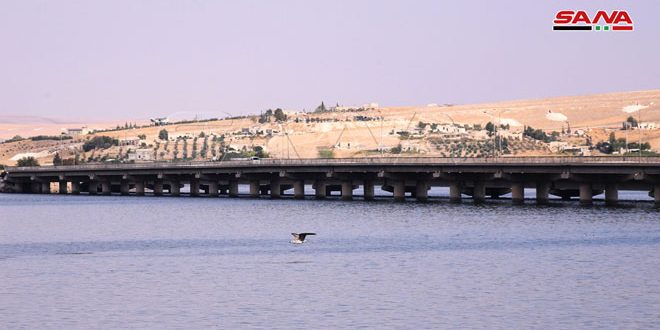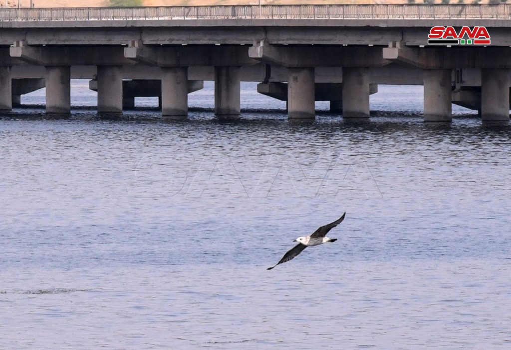 ويمتدُّ الجسرُ فوقَ بحيرةِ سدِّ تشرينَ ويربطُ ضفتي الفرات بطولِ 588 متراً وعرضِ 12 مترا ويبلغُ عددُ فتحاتِه 21 فتحةً وتبلغُ مساحةُ بحيرةِ سدِّ تشرين على نهرِ الفراتِ 166 كيلو متراً مربعاً ويبلغُ حجمُ تخزينِ البحيرةِ منَ المياهِ ملياراً وتسعمئةِ مليونَ مترٍ مكعبٍ.