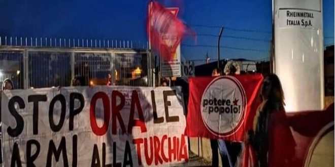 وذكرت وكالة اكي الإيطالية أن المحتجين الذين تجمعوا أمام مقر الفرع الإيطالي لشركة “راينميتال” الألمانية لصناعة السلاح رفعوا لافتات كتب عليها: “أوقفوا إرسال الأسلحة إلى تركيا” مؤكدين أن من العار مواصلة إرسال الأسلحة للنظام التركي الذي يشن عدوانا على الأراضي السورية.
