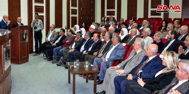 كرم فرع اتحاد الصحفيين في المنطقة الجنوبية اليوم الدكتور صابر فلحوط الرئيس الفخري لاتحاد الصحفيين السوريين تقديرا لعطائه ومسيرته الصحفية والفكرية والثقافية الزاخرة ونيله جائزة الدولة التقديرية للعام الحالي وذلك خلال حفل أقيم في صالة المحافظة.