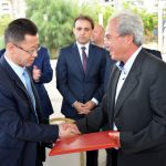 ووقع بروتوكول تسليم المساعدات الإنسانية محافظ اللاذقية ابراهيم خضر السالم والقائم بأعمال السفارة الصينية بدمشق ما شيو لينغ فيما وقع بروتوكول استلام المنحة رئيس مكتب الجاهزية في المديرية العامة للجمارك فرحان السموري بمرفأ اللاذقية.
