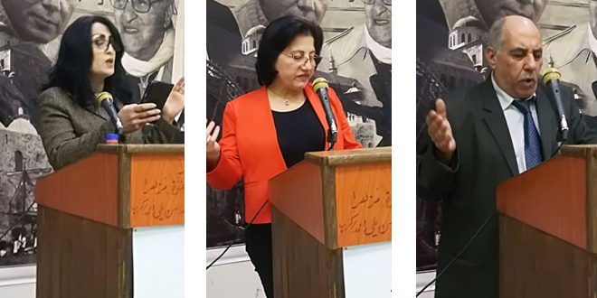 وقرأ الحداد مجموعة من القصائد الوطنية منها “الشام حبيبتي.. وجع الشام.. عيون الشام” تخللها العديد من المشاهد الإنسانية التي تتابعت على البلاد وجعلتها أكثر قوة ومنعة كما تضمنت القصائد مجموعة من التجارب التي يمر بها الشعراء بشكل يومي خصوصاً فيما تتعرض له المنطقة والأمة من مؤامرات وحروب.