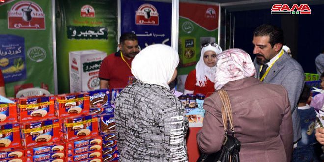 200 شركة تنوعت معروضاتها بين المنتجات الغذائية والاستهلاكية والأقمشة والمنسوجات والألبسة وآلات التطريز والطباعة وأصناف زيت الزيتون المصنعة محلياً ومواد التجميل بمعرض خريف حلب 2019 الذي تستضيفه المدينة الرياضية بالحمدانية.