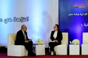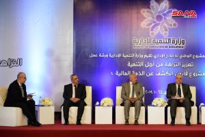 شارك في الورشة رئيس المحكمة الدستورية العليا جهاد اللحام ورئيسة الهيئة المركزية للرقابة والتفتيش القاضية آمنة الشماط ورئيس الجهاز المركزي للرقابة المالية محمد برق وعدد من معاوني الوزراء وأعضاء مجلس الشعب والقضاة والمديرين العامين في المؤسسات الاعلامية.