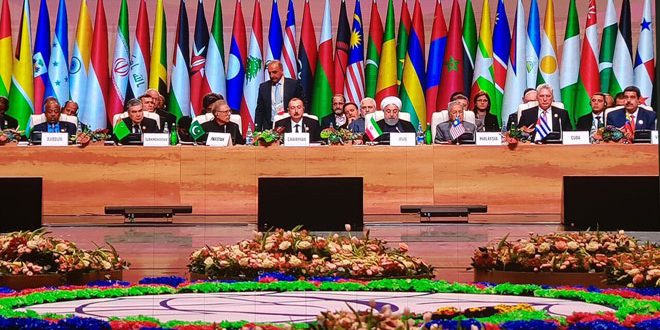 وأوضح روحاني في كلمة اليوم خلال القمة الـ 18 للدول الأعضاء في حركة عدم الانحياز في العاصمة الأذربيجانية باكو أن الإجراءات الأميركية المعادية للدول المستقلة إرهاب اقتصادي بهدف الضغط عليها لتنفيذ أجندات واشنطن.