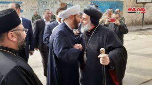 كما زار المفتي حسون كاتدرائية مار جرجس للسريان الأرثوذكس في الحسكة والتقى برجال الدين المسيحي وصلى فيها مبتهلا إلى الله بأن ينصر سورية على أعدائها وأن يديم الأمن والأمان في سورية وفي جزيرتها وأن يعزز المحبة والترابط والأخوة التي تجمع كل أبنائها.