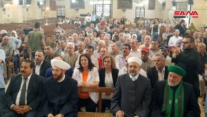 من جهته أكد مطران الجزيرة والفرات للسريان الأرثوذكس مار موريس عمسيح أن الصلوات ترفع في الكنيسة والجامع في الوقت ذاته من أجل السلام والمحبة ولتعود القلوب إلى حضن سورية الأم التي لم تتخل عن أولادها.. وبهمة جيشنا وصمود شعبنا وحكمة قيادتنا منصورون على كل معتد.
