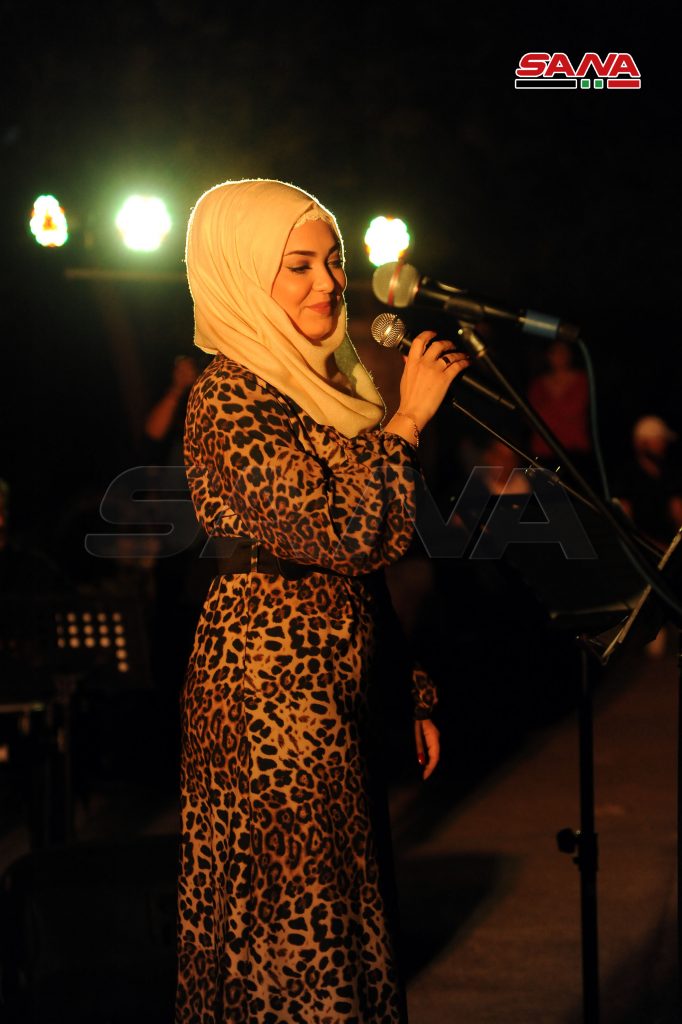 كما قدمت الفنانة فاتن صيداوي أغنية “يا سورية عزك دام” للمطرب اللبناني الراحل سمير يزبك وأغنية “بالفرح” من مسرحية غربة وسط تجاوب وتصفيق من الجمهور إضافة إلى موشح يا فاتن الغزلان اسمح وكلمني من تلحين الموسيقي الرائد عمر البطش.