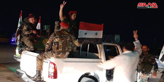 أهالي قرية أم الكيف على طريق تل تمر – رأس العين بريف الحسكة الشمالي الغربي يستقبلون وحدات الجيش العربي السوري