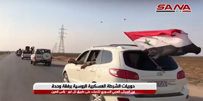 دوريات الشرطة العسكرية الروسية برفقة وحدة من الجيش العربي السوري تتحرك على طريق تل تمر – رأس العين