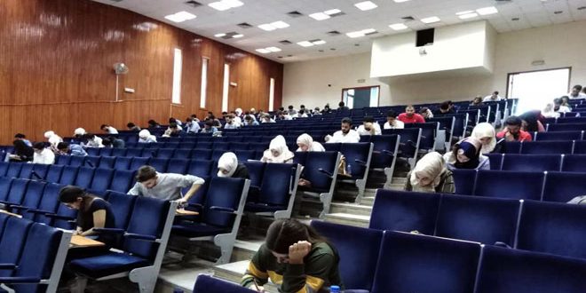 تقدم اليوم نحو 2974 طالباً وطالبة من الجامعات السورية الحكومية والخاصة وغير السورية للجلسة الثانية من الامتحان الطبي الموحد دورة تشرين 2019 والذي أجراه مركز القياس والتقويم في وزارة التعليم العالي.