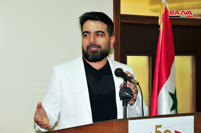 أما الشاعر الدكتور محمود الخطيب فألقى نصين شعريين بأسلوب الشطرين وفق عاطفة ذاتية عبر خلالها عن حالات اجتماعية ونفسية عكست صوراً من الواقع.