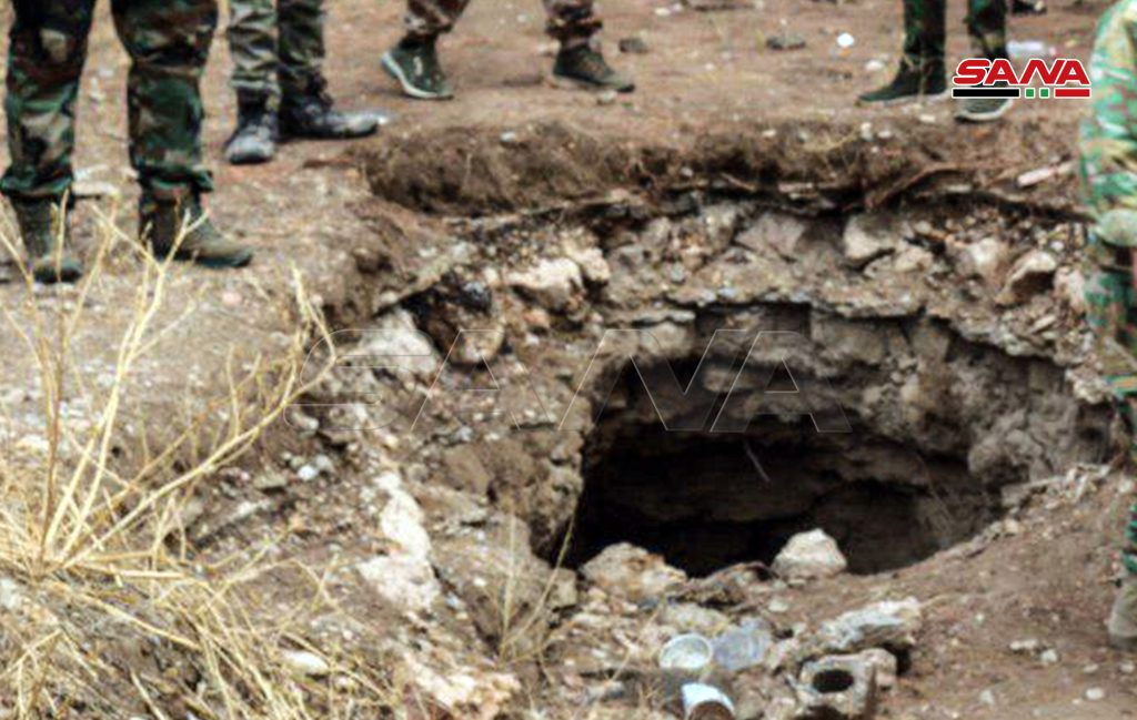 وذكر قائد ميداني لمراسل سانا أن “الأنفاق التي تم اليوم العثور عليها تمتد تحت الأبنية السكنية في أحياء المدينة ولها عدة فتحات تم تمويهها وإخفاؤها بطريقة محكمة ولها تفرعات عديدة وفتحات للتهوية” مشيراً إلى أنه “تمت المباشرة في تمشيط هذه الأنفاق بالتعاون مع وحدات الهندسة في الجيش العربي السوري حيث عثر بداخلها على كميات من الأسلحة والذخائر بعضها غربي الصنع وبعضها إسرائيلي المنشأ”.