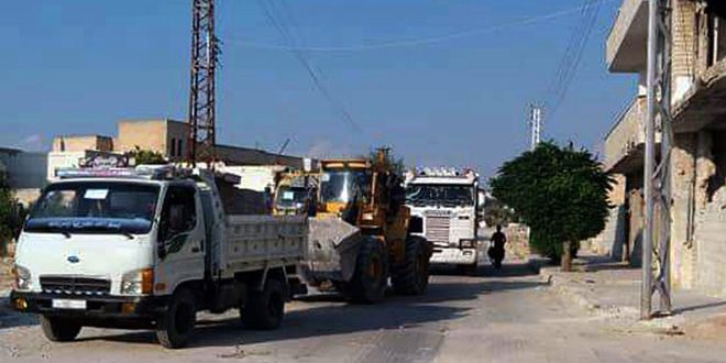 وأشار شميط إلى وجود منازل عائدة لـ 600 أسرة هي قيد الدراسة وبحاجة إلى ترميم وإصلاح مبيناً أنه تم تركيب 65 جهاز إنارة بالطاقة الشمسية في شوارع متفرقة من البلدة وترحيل كميات كبيرة من الأنقاض.