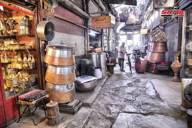 2019-11-03دمشق-ساناالنحاسة حرفة يدوية براقة تتميز بالدقة والإتقان وهي من أهم الحرف التي اشتهرت بها مدينة دمشق منذ القدم ووصل بريق مصنوعاتها إلى مختلف الأسواق العالمية. تصوير: وسيم خيربك النحاسة 2019-11-03Rem