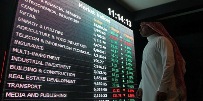 منيت الأسهم السعودية بأكبر خسارة لجلسة واحدة اليوم إذ باعت مؤسسات محلية الأسهم استعداداً لإدراج شركة أرامكو النفطية بينما نزلت بورصة دبي بسبب بنك الإمارات دبي الوطني.