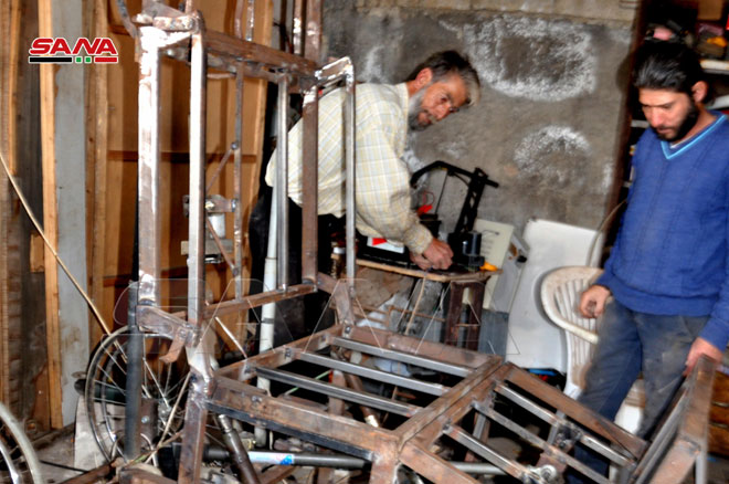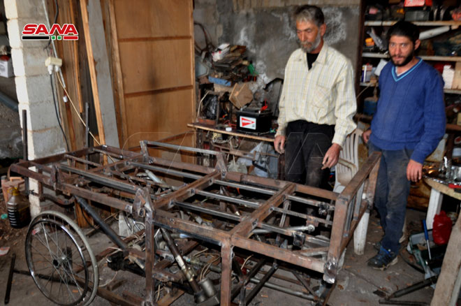 توظيف السرير الطبي ليكون كرسيا متحركا بنفس الوقت ابتكار صممه المواطن يوسف حمزة ضمن منزله في قرية رساس بالسويداء بهدف مساعدة المرضى والعجزة على التنقل.