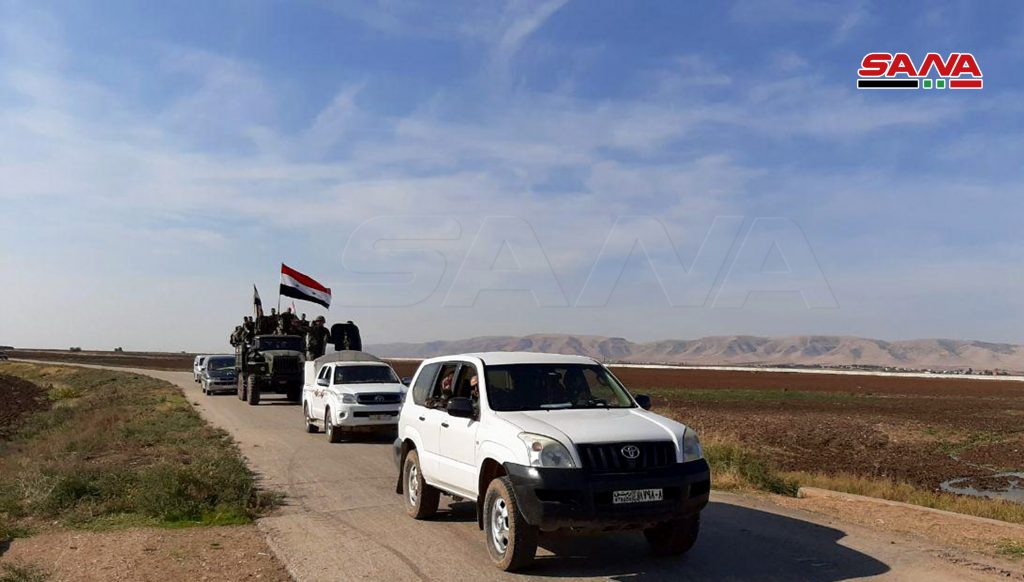 وكانت وحدات الجيش تابعت انتشارها خلال الأيام الأخيرة بريف الحسكة الشمالي ودخلت مدينتي الدرباسية وعامودا وقرى وبلدات دودان في تل عفر وخراب كورد بريف القامشلي الغربي والعديد من القرى والبلدات بريف المحافظة الشمالي الشرقي على الحدود السورية التركية من ريف رأس العين الشرقي غربا وصولا الى القامشلي شرقا وثبتت نقاطها على محور يمتد بنحو 90 كم.