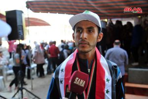 الفائزون في المراكز الثلاثة الأولى أكدوا لمندوبة سانا أنهم كانوا حريصين على الفوز وتسجيل مركز جديد لهم ليكونوا قدوة في أي عمل يسهم في بناء سورية حيث بينت آية حسن التي حصلت على المرتبة الأولى في الجري استعدادها الدائم للقيام بأي عمل يرتقي بالبيئة.