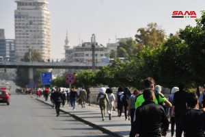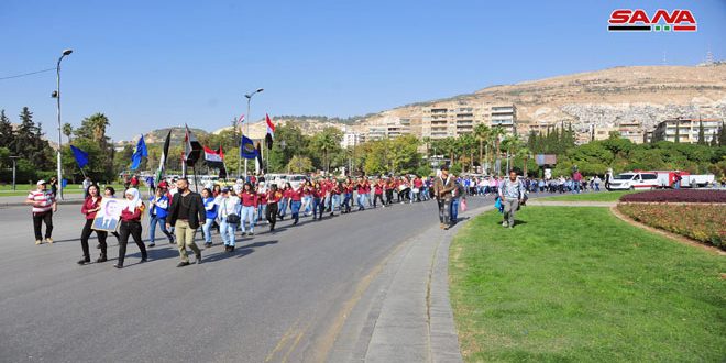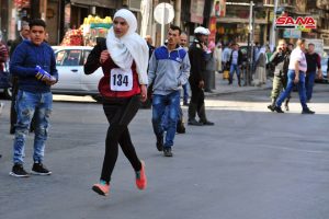 بمشاركة 350 لاعباً ولاعبة نظم ماراثون رياضي بمناسبة اليوم الوطني للبيئة من ساحة الأمويين باتجاه جسر فكتوريا مروراً بساحة المرجة وصولاً إلى قلعة دمشق لتفعيل دور الرياضيين في حماية البيئة والحفاظ عليها.
