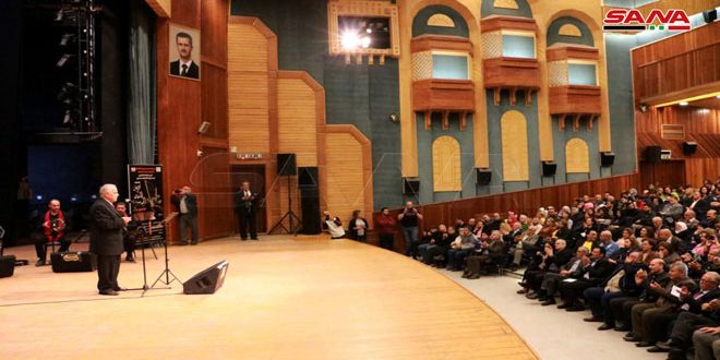 أغنيات طربية وموشحات تعكس الأصالة الفنية قدمتها مساء اليوم فرقة نادي دار الفنون بحمص ضمن فعاليات اليوم الثامن لمهرجان الثقافة الموسيقية على مسرح دار الثقافة.