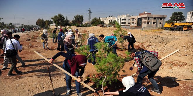 ضمن فعاليات المهرجان البيئي الثالث نظمت محافظة دمشق اليوم حملة تشجير على طريق المتحلق الجنوبي العقدة التاسعة تم خلالها زراعة أشجار الصنوبر والزيزفون والسرو.