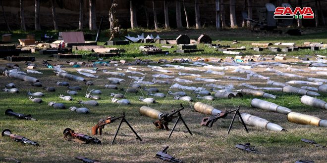 وعثرت الجهات المختصة في الثالث من الشهر الجاري في إطار مهامها لاستكمال تأمين المناطق التي حررها الجيش العربي السوري من الإرهاب على كميات كبيرة من الأسلحة والذخائر من مخلفات الإرهابيين في المنطقة الجنوبية.