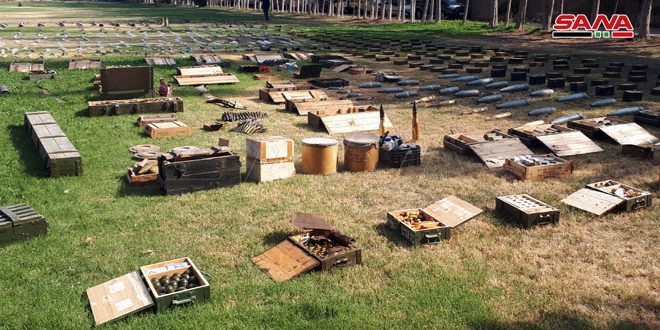 العثور على أسلحة وذخائر بينها صواريخ تاو أمريكية ومواد سامة من مخلفات الإرهابيين في أرياف دمشق ودرعا وحماة