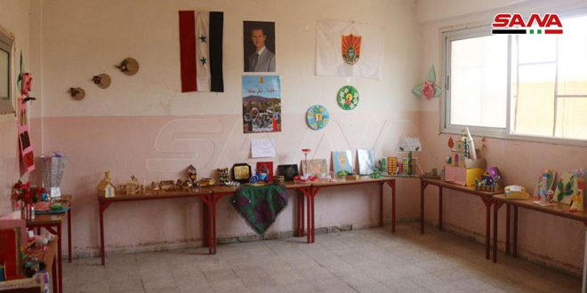 وبينت نسرين الجاسم مديرة مدرسة هشام الجاسم أن “المعرض تضمن مجسمات وأشكالاً وأعمالاً تستند إلى آلية إعادة تدوير البقايا والمواد التالفة الطبيعية والصناعية من ورق وأصواف وقطن وبقايا أقمشة وأكياس فارغة استخدمها الأطفال في أعمالهم إضافة إلى أعمال ولوحات فنية وأخرى علمية تؤكد أهمية الحفاظ على البيئة والطبيعة إلى جانب لوحات ذات طابع وطني وتوعوي حول البيئة”.