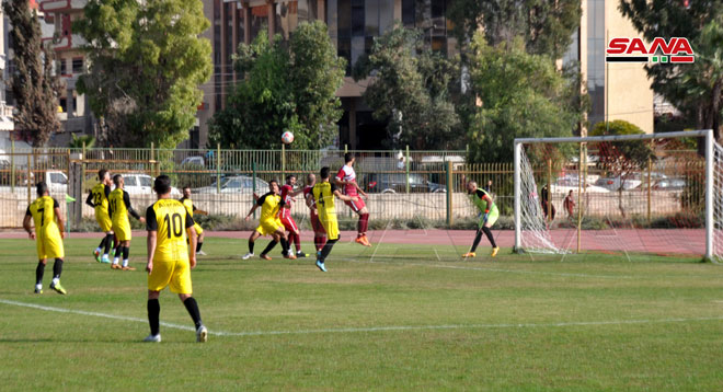 من مباراة النضال والعربي على أرض الملعب البلدي بمدينة المزرعة الرياضية في السويداء في افتتاح دوري الدرجة الأولى بكرة القدم