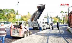باشرت ورشات الصيانة في محافظة دمشق أعمال تزفيت طريق كيوان الممتد من جسر تشرين باتجاه ساحة الأمويين.