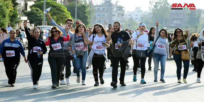 وانطلق المشاركون من باب شرقي مرورا بطريق الشيخ رسلان وساحة العباسيين ثم شارع فارس الخوري انتهاء بصالة نادي الشرطة الرياضي قاطعين مسافة 5 كيلومترات.