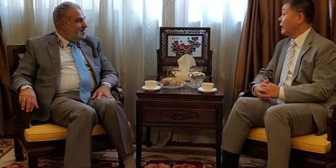وقال كيجيان خلال لقائه عميد الخارجية في الحزب السوري القومي الاجتماعي في لبنان قيصر عبيد إن “الصين تقف إلى جانب سورية في بسط وتثبيت سيادتها على كل أراضيها كما تدعم عودة المهجرين إلى مدنهم وأرزاقهم”.
