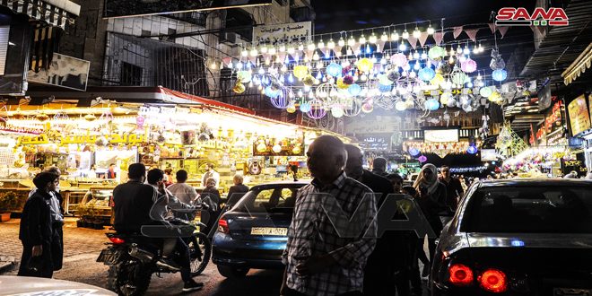 ففي دمشق ارتفعت الزينة في الأسواق والمدينة القديمة وحي الميدان وسوق البزورية في أجواء تعكس الفرح والبهجة بالعيد.