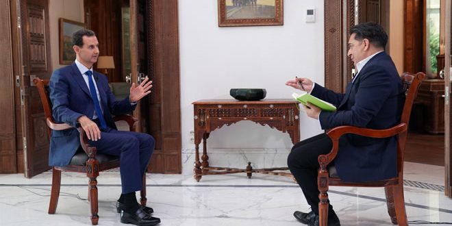 وبين الرئيس الأسد أن لتنظيم “داعش” الإرهابي شريكين في سرقة النفط السوري منذ العام 2014 وهما رئيس النظام التركي رجب طيب أردوغان وزمرته والأمريكيون الذين يحاولون دائما نهب البلدان الأخرى.