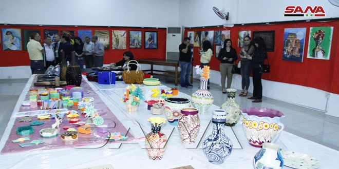 مجموعة من اللوحات والأعمال الفنية تنوعت ما بين الرسم بمدارسه المتعددة والضغط على النحاس مع باقة من الأشغال اليدوية قدمها 38 مدرساً ومدرسة في المعرض السنوي الخاص بمدرسي التربية الفنية في محافظة طرطوس.