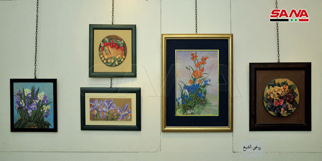 وعبر خمس لوحات شاركت الفنانة صبرية فطوم بلوحات تحكي صوراً مختلفة عن الحرب في سورية بمختلف أشكالها من أبرزها لوحة عن الجندي السوري إضافة إلى لوحات عن سنابل القمح وصمود السوريين في مواجهة كل ما تعرضوا له.