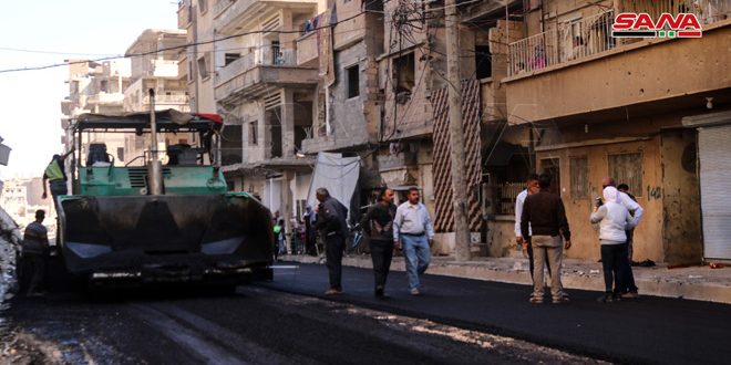 باشرت ورشات فرع الشركة العامة للطرق والجسور في المنطقة الشرقية عملية مد القميص الإسفلتي في الشارع الرئيس لمنطقة الرديسات بطول 600 متر ضمن الأحياء المحررة بمدينة دير الزور.