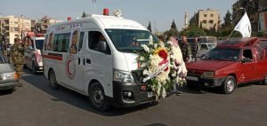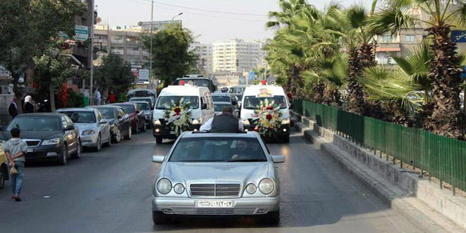 وانطلق موكب التشييع من جامع الماجد عند دوار البطيخة أمام مخيم اليرموك ليوارى الشهيد الثرى في مقبرة الشهداء الجديدة داخل المخيم بمشاركة ممثلي الفصائل الفلسطينية وفعاليات شعبية.