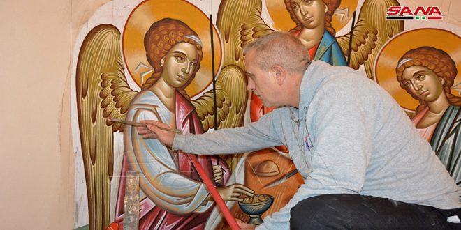 وأوضح أنه تخصص برسم الأيقونات الذي يتطلب إضافة إلى الموهبة والشغف أن يتتلمذ الفنان على يد كبار هذا اللون مبيناً أهمية خطوات اعداد الأيقونة ولا سيما اختيار المواد والألوان الصحيحة لضمان تنفيذ عمل يدوم مئات السنين.