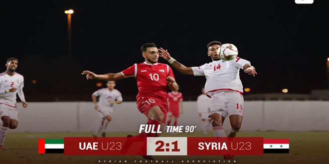 خسر منتخب سورية الأولمبي لكرة القدم أمام نظيره الإماراتي بهدفين لهدف في مستهل مبارياته في بطولة دبي الدولية للمنتخبات الأولمبية والتي جرت اليوم على ملعب شباب الأهلي بدبي.