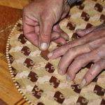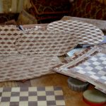 ويلفت حاطوم إلى أنه يقضي ساعات طويلة في ورشته لتنسيق القطع الخشبية من قشر الجوز والسنديان ووضع الرسوم والأشكال الهندسية لإعداد براويظ وتحف وطاولات سفرة وغيرها مستعرضا مراحل العمل والتي تبدأ من تحديد الفكرة واختيار حجم القطعة الخشبية ورسم التصميم بدقة وتلبيس القطع وتلميعها بمادة اللكر باستخدام مشرط وأدوات هندسية ومكبس حراري.