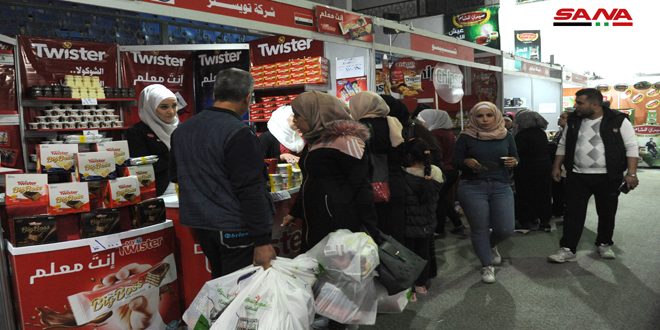 وتعرض الشركات مئات الأصناف من المنتجات الغذائية من الكونسروة والمعلبات والحبوب المعلبة والزيوت والسمون والمنظفات والمحارم والورق الصحي والأواني المنزلية والألبسة على مختلف أنواعها.