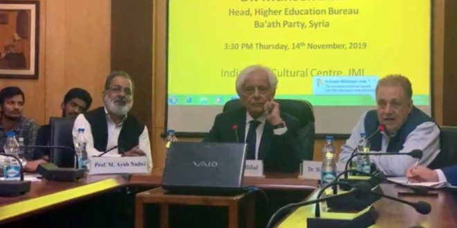 وفي سياق متصل التقى الدكتور بلال الدكتورة نجمة أختر رئيسة الجامعة الملية الإسلامية في العاصمة نيودلهي وتم خلال اللقاء بحث سبل التعاون بين الجامعة والجامعات السورية حيث أبدت اختر استعداد الجامعة لتبادل الخبرات والخبراء مع الجامعات السورية في كل المجالات .