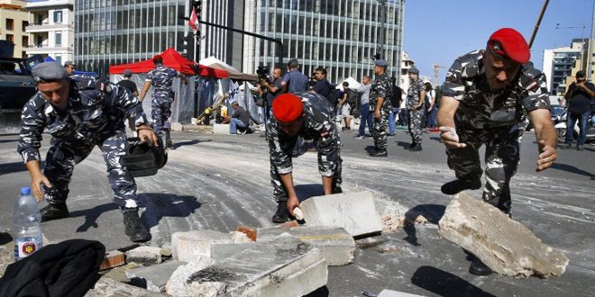 ويعمل الجيش اللبناني والقوى الأمنية على فتح ما أمكن من الطرقات رغم أن المحتجين وضعوا أول أمس الحجارة والأتربة ومواد اسمنتية على الطرقات في الجنوب وفي نفق نهر الكلب المؤدي إلى طرابلس.