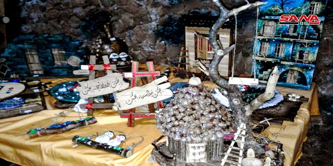 تحف ومجسمات من بقايا الأخشاب صممها الشاب بهاء القضماني ووظفها ضمن مشروع إنتاجي صغير عرف انطلاقته من بلدة قنوات في ريف السويداء.