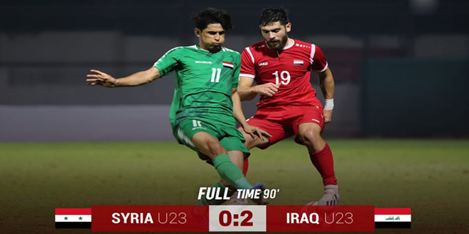 خسر منتخب سورية الأولمبي لكرة القدم امام نظيره العراقي بهدفين دون رد في مباراته الثانية من بطولة دبي الدولية للمنتخبات الأولمبية والتي جرت اليوم على ملعب شباب الأهلي بدبي.